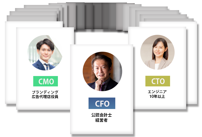 財務戦略/会計、IT/システム、ブランディング/マーケティング、DX(デジタルトランスフォーメンション)など各分野に精通したプロフェッショナルが、CEOの右腕となり、自社内の組織の統括や外部との交渉や提携などを行なって参ります。