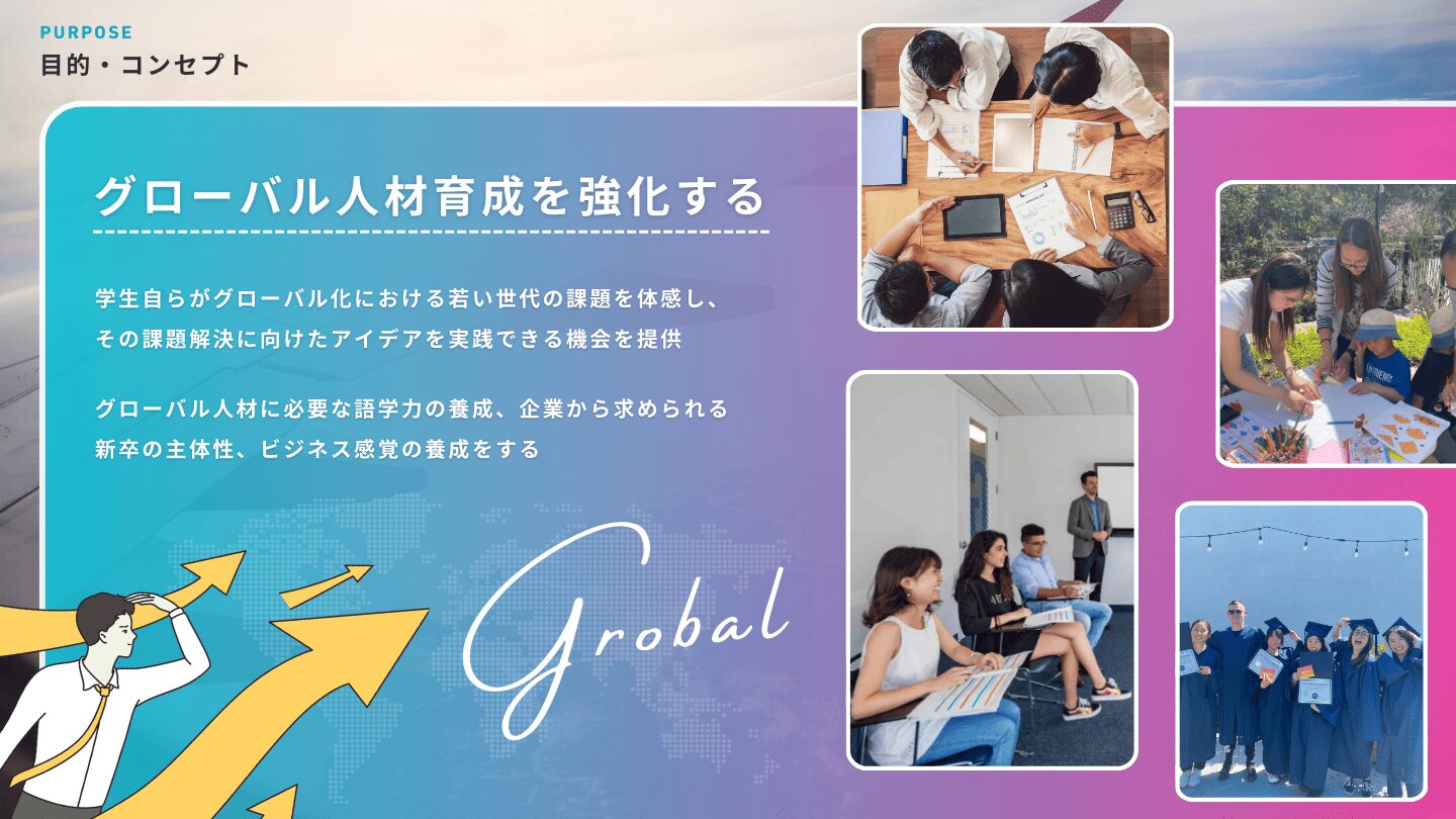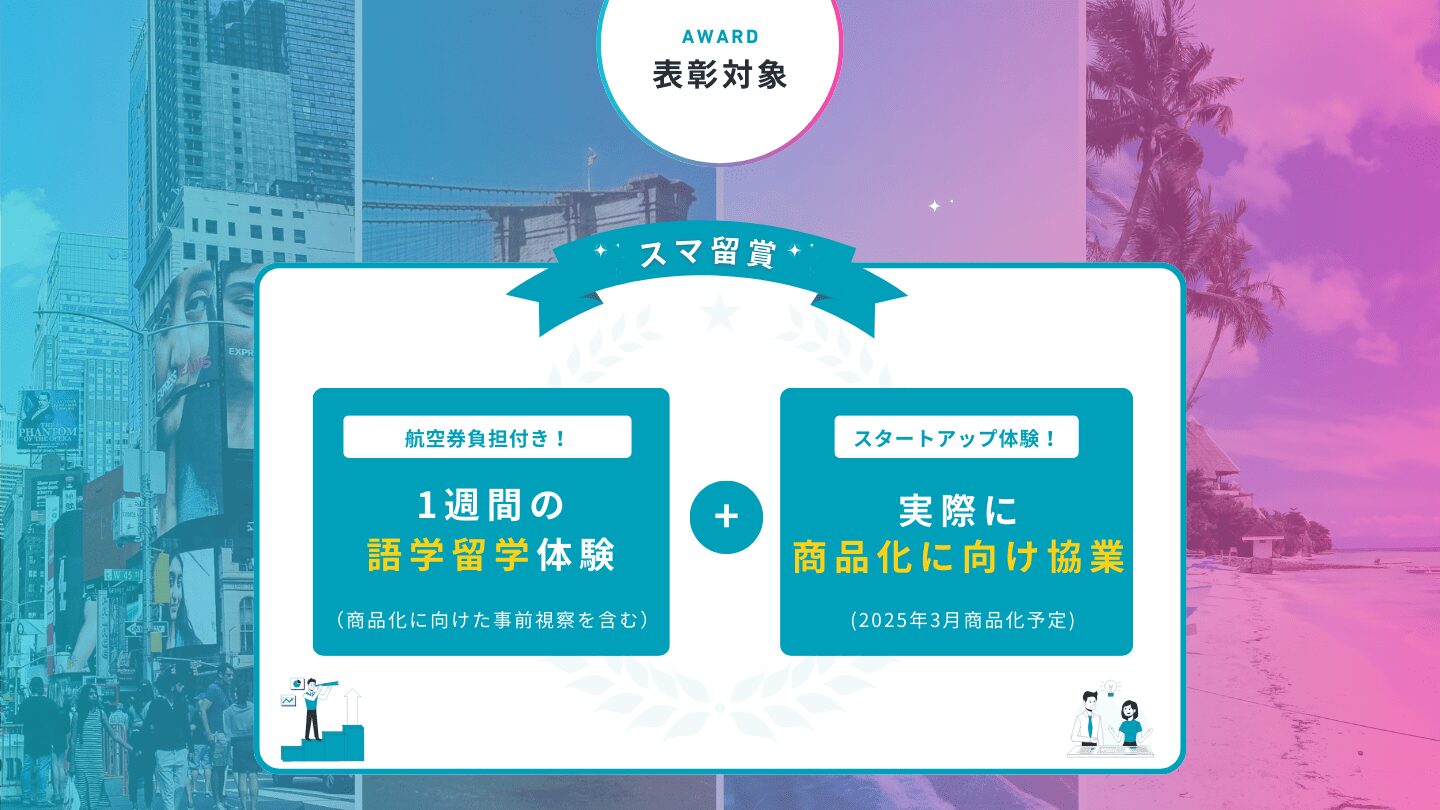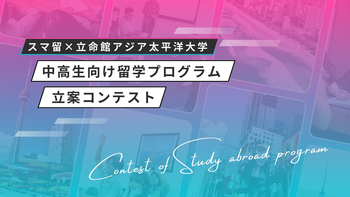 スマ留が手がける中高生向け留学プログラムの立案コンテストの資料を制作。若い世代が自ら留学プログラムを企画するユニークな取り組みを、視覚的にわかりやすく整理。コンテストの目的や参加メリット、応募方法を明確にし、中高生が挑戦したくなるようなワクワクするデザインに仕上げました。