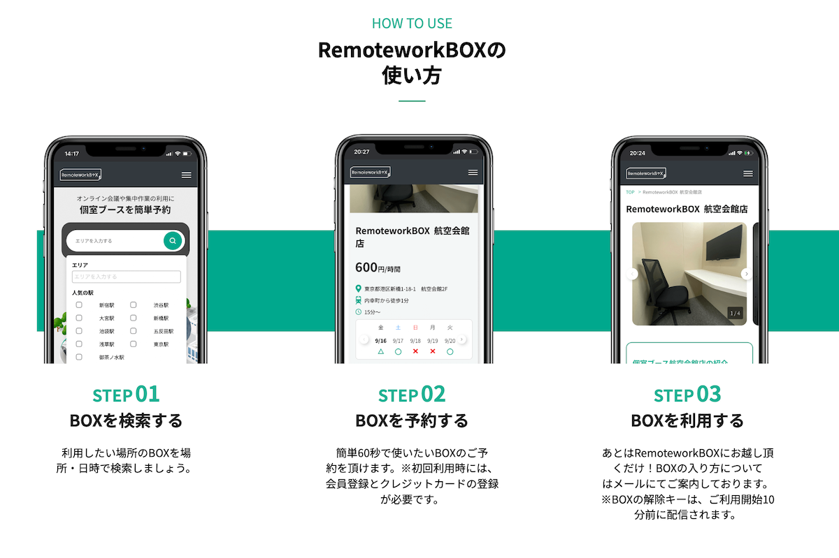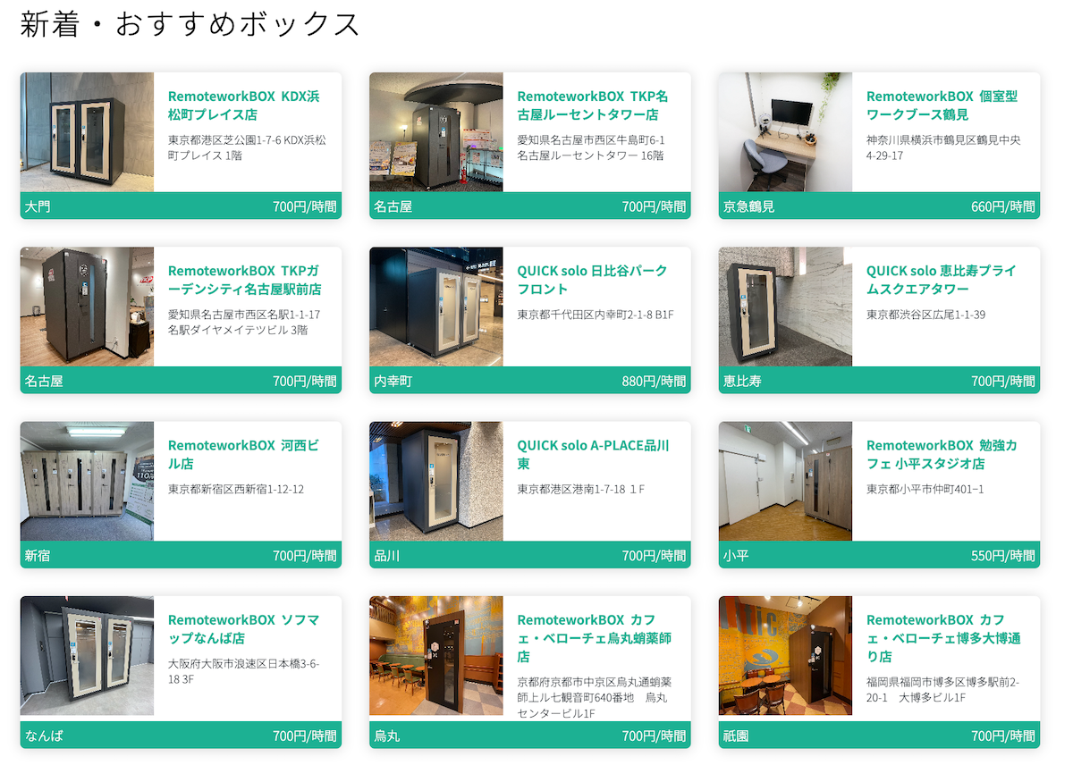 リモートワークボックス公式サイト(https://remotework-box.jp/) の制作にあたり、プロダクトの商品設計段階から関与し、UI/UXの最適化、エリア検索・決済・ログイン・お気に入り機能の実装 まで幅広いソリューションを提供しました。ユーザーが直感的に利用できる利便性の高いプラットフォームを構築し、予約・決済のスムーズな導線設計を実現しました。