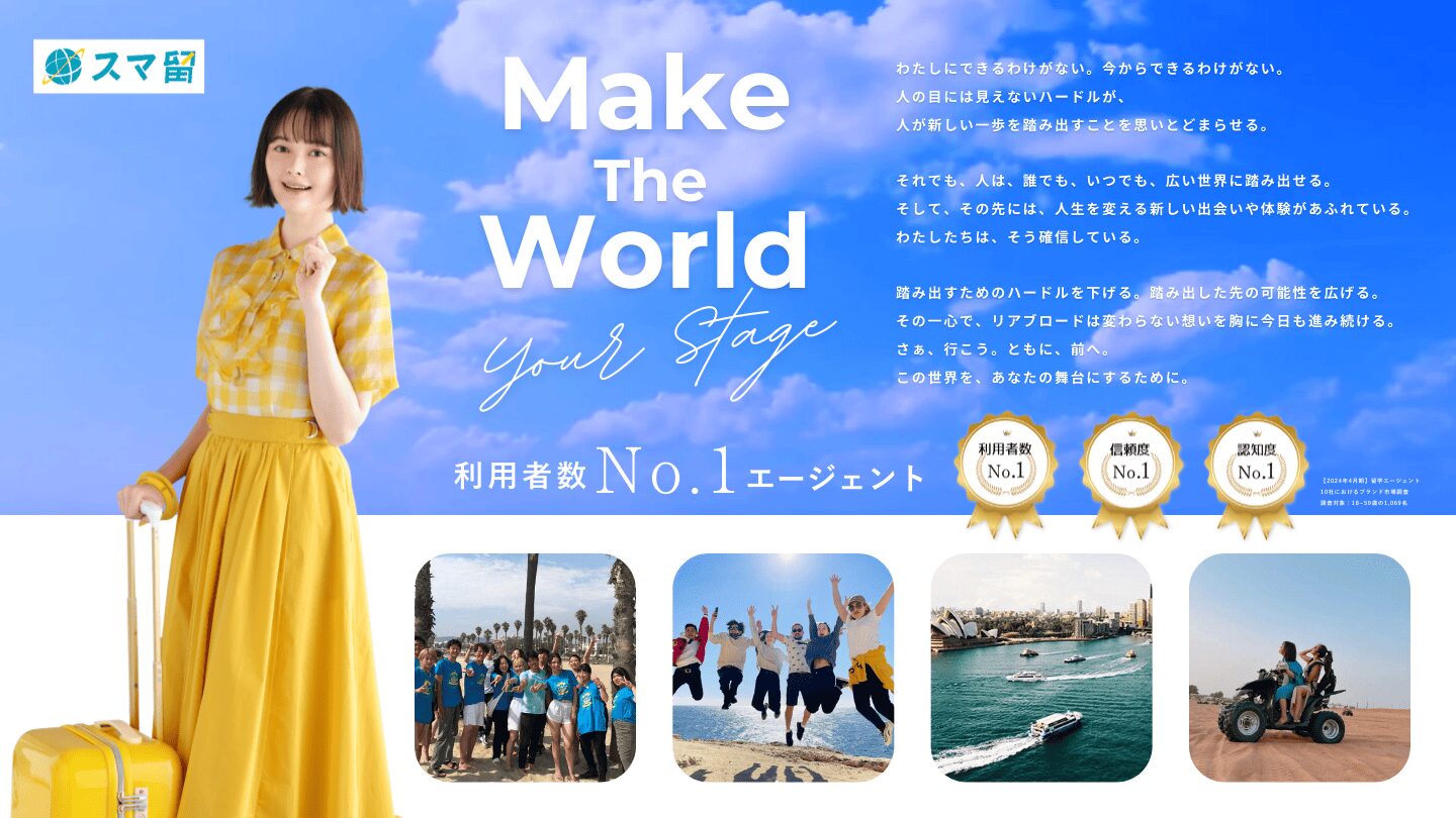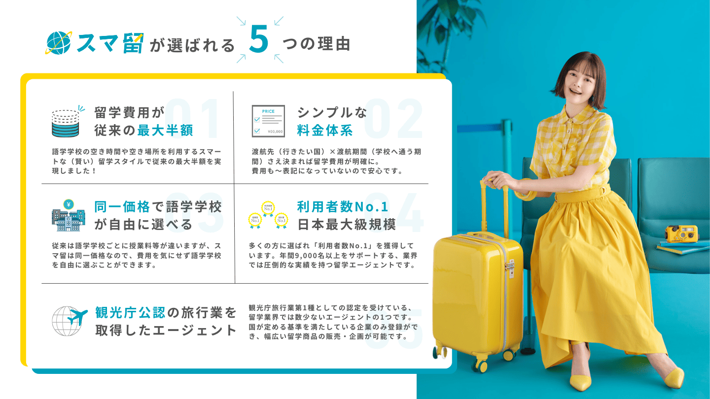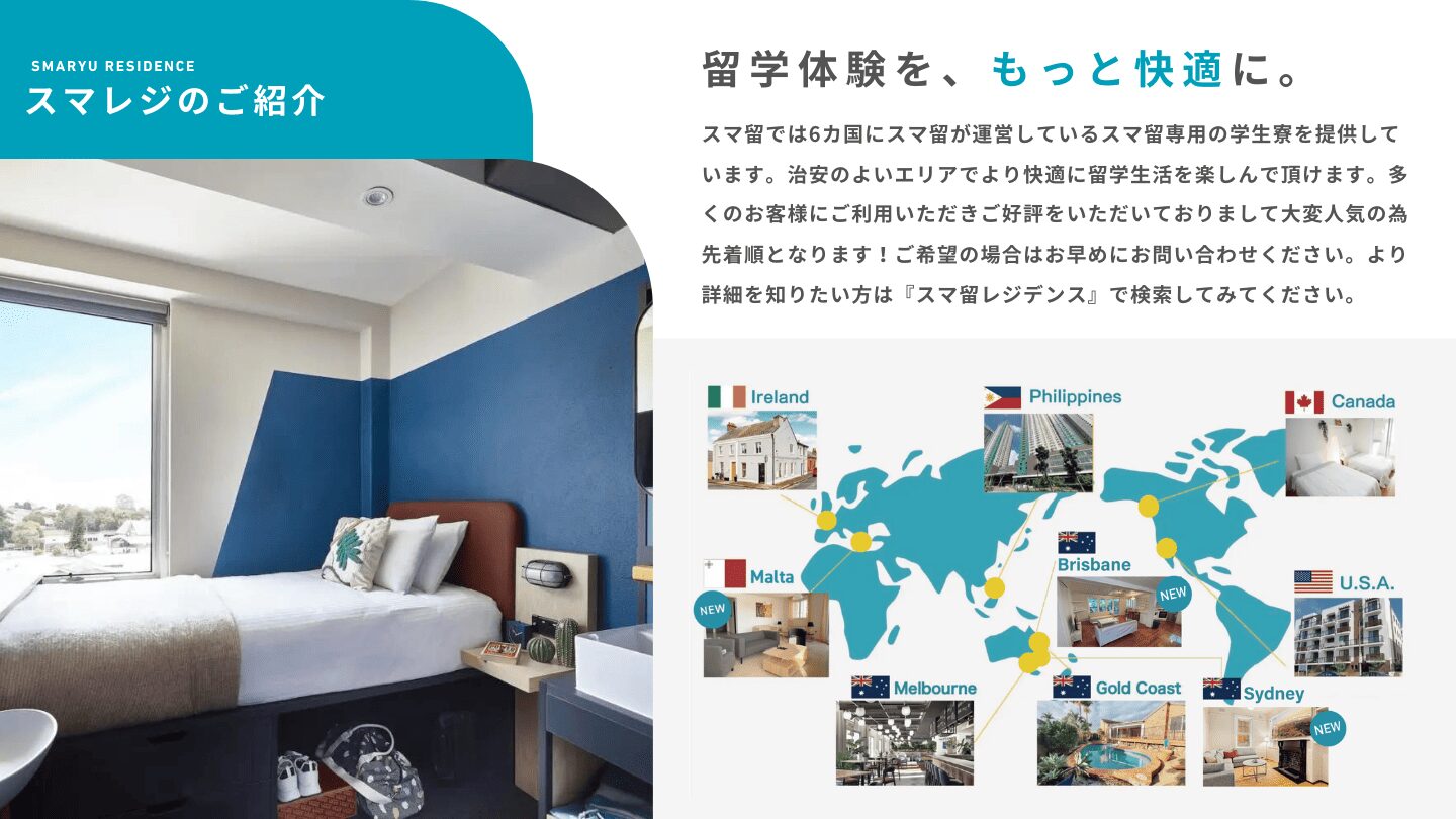 大手留学エージェントスマ留の営業パンフレットを制作。学生が見ていてワクワクする没入感のあるデザインを採用し、グラフィックに動きを加えながら、視覚的に分かりやすい構成に。また、属人的な営業に頼らず、誰が話しても高品質かつ均一的な情報を提供できる設計で、営業ツールとして最大限に活用できる資料に仕上げました。
