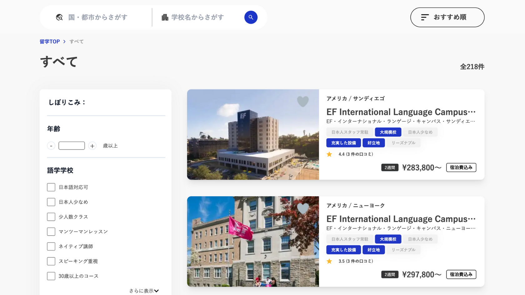 • エリア・期間・オプション(滞在先・食事・授業数など)を選択すると即座に価格が更新されるUI設計